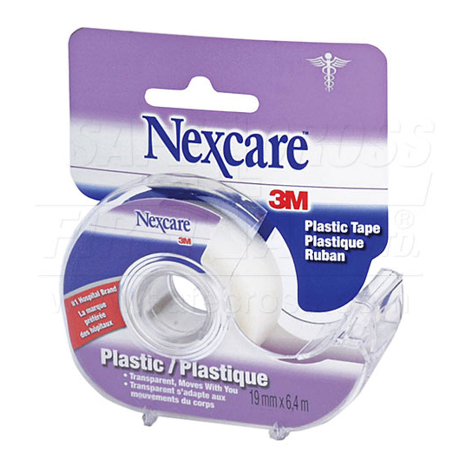 7893 3M Transpore Plastic Tape with Dispenser - 1.9 cm x 6.4 m (3/4 x 7 yds). Clear, easy-to-tear, perforated plastic tape. Ideal for securing bulky dressings. Stretches and conforms to body contours for greater holding power; suitable for active, hard-to-bandage areas such as knees, elbows or fingers. Transparent for visualization of the skin and wound monitoring. Perforated for easier, bi-directional tearing. Easy to manage - even with gloves. Leaves little or no residue. Latex-free. Sold as Each