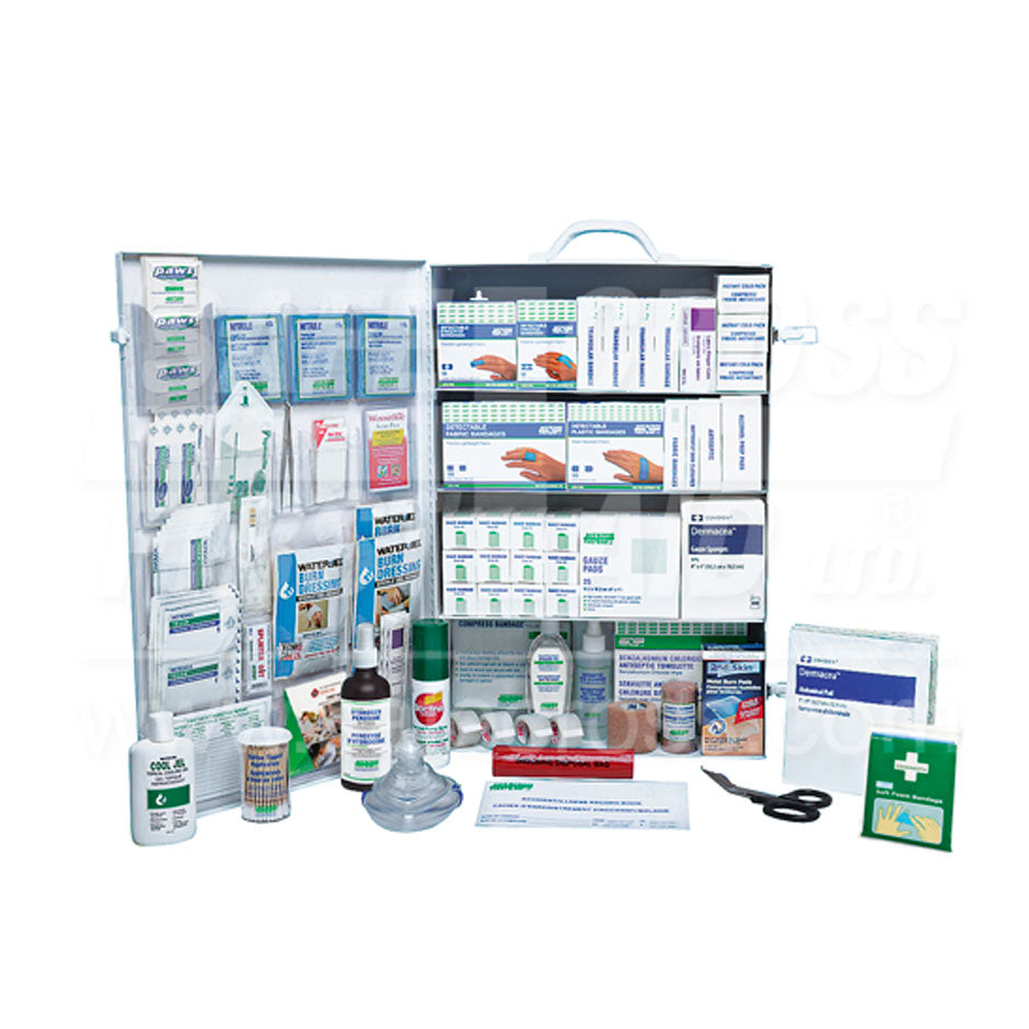 1782 Federal Restaurant/Food Processing Deluxe First-Aid Kit, #4 Metal Box. Contains a comprehensive assortment of recommended first aid items for treating common injuries, as well as products for treating burns and scalds Includes personal protective devices to help reduce the transmission of communicable illnesses and diseases Exceeds minimum standards for Occupational Health and Safety Type C Kit. Ideal for restaurants, cafeterias, banquet halls, hotel kitchens, bars and other food preparation areas. Sold as each.