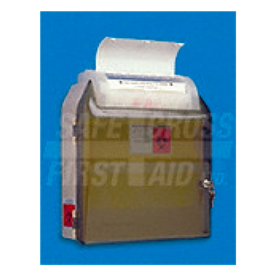 14493 Tyco Gatorguard In Patient Rooms Sharps Container, Translucent Yellow - 11.34 litre (3 gallon U.S.) Capacity. For use in patient areas and where added security is required. Tumbler design allows for disposal of various sized items. Protective seal prevents patients from tampering with container contents. Pivoting flip-tumbler mechanism minimizes accidental contact while depositing sharps; While lift tabs assist deposit. Special independent lid locks the filled container closed for final disposal. Fill line signals when the container capacity is reached. Sold as Each