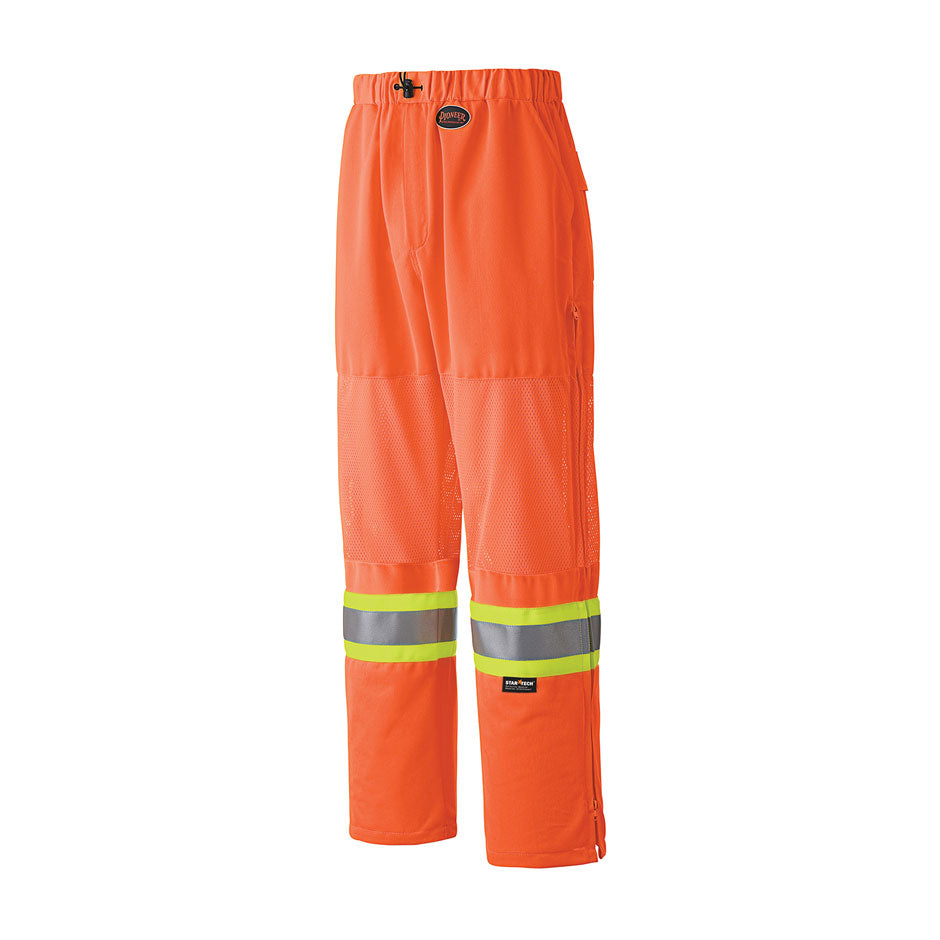 Pioneer 6001P Hi-Viz Traffic Safety Pants - Poly Knit - Mesh Leg Panels - Hi-Viz Orange