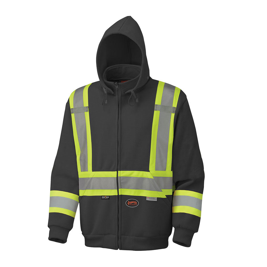 Pioneer 6925BK Safety Hoodie - 10.5 oz (360 GSM) Polyester Fleece - Black