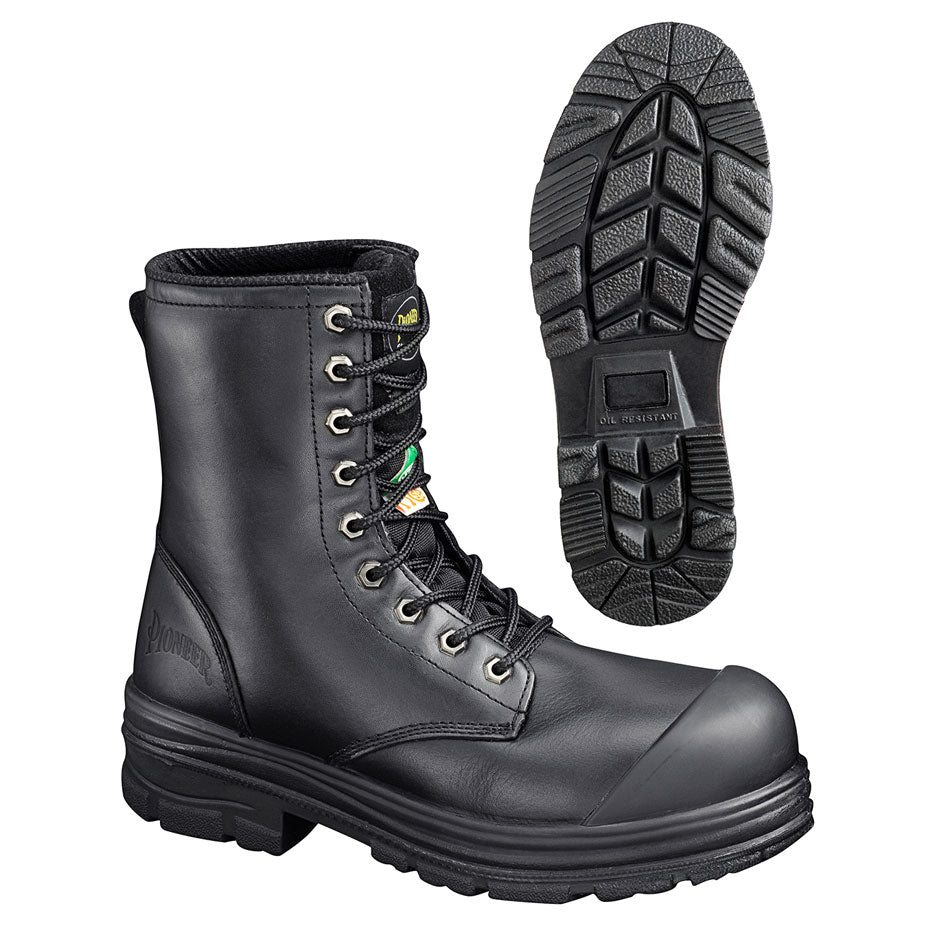 Pioneer V4610370 Steel Toe/Plate Leather 8" Work Boots, Black. CSA class 1 steel toe/steel plate. Durable leather construction with TPU protective bumper toe cap. Moulded PU insole