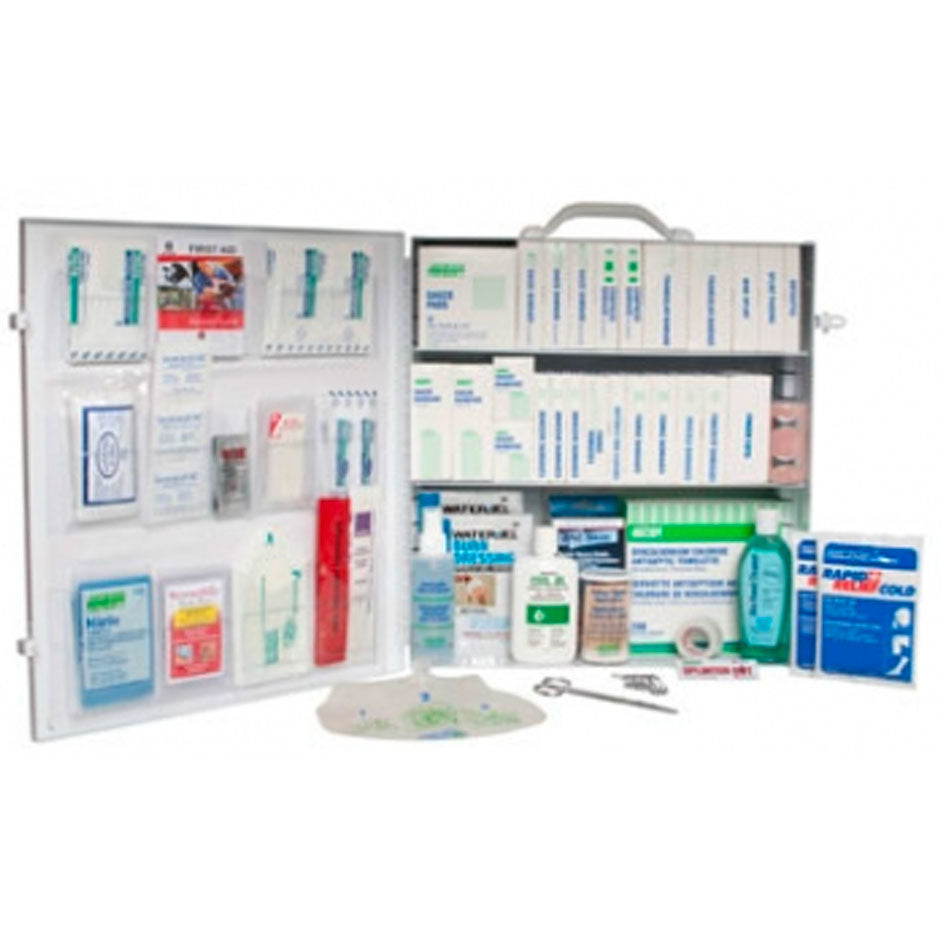 1892 Quebec Restaurant/Food Processing Standard First-Aid Kit, Metal Box. Contains a comprehensive assortment of recommended first aid items for treating common injuries, as well as products for treating burns and scalds Includes personal protective devices to help reduce the transmission of communicable illnesses and diseases Exceeds minimum standards for Occupational Health and Safety Section 4 Kit. Ideal for restaurants, cafeterias, banquet halls, hotel kitchens, bars and other food preparation areas. Sold as each.