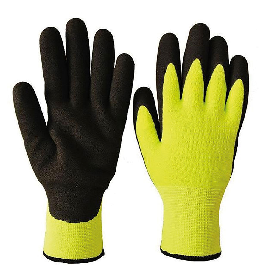 Seamless Knit Double Nitrile Winter Grip Gloves - Hi-Viz Yellow/Green - Dz